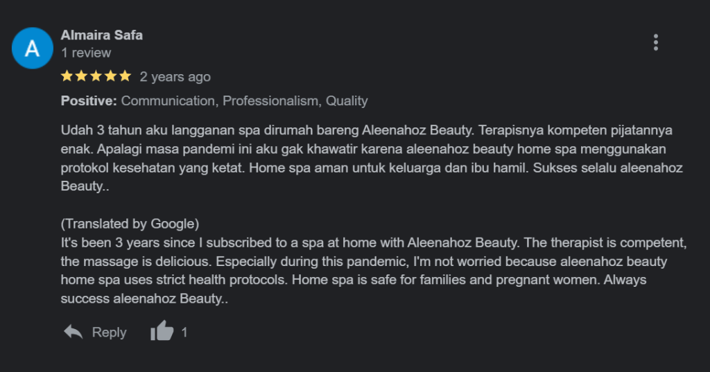 Aleenahoz Beauty memiliki banyak pelanggan setia karena terkenal dengan standar dan protokol kesehatannya yang tinggi